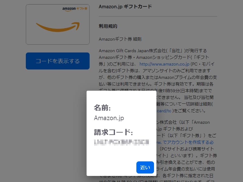 追記:Amazonギフトコードの受け取りが完了しました。 – 2023年11月9日