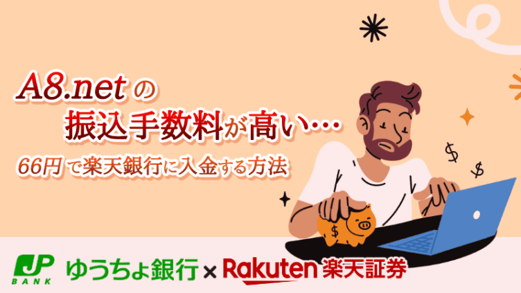 A8.netの振込手数料が高いと感じたら|楽天銀行に66円で入金する方法【ゆうちょ×楽天証券】